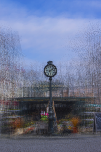 Voor mijn afstudeerproject heb ik een serie gemaakt over straatklokken. Ik fotografeer elke klok zo’n 10 a 15 keer terwijl ik er in een halve cirkel kloksgewijs omheen loop (vandaar de titel ‘Clockwise‘). Het eindresultaat is een foto waarop de klok het enige object is dat scherp is. Ik hoop hiermee de vergankelijkheid van tijd uit te drukken.